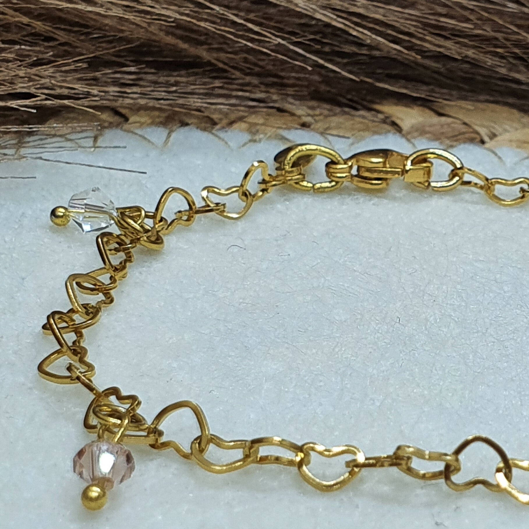 Een lief armbandje met glaskraaltjes. Het schakelarmbandje heeft hartvormpjes en is van Stainless Steel. De standaardlengte is +/- 19 cm. Wil je een kleinere of grotere maat, geef dit dat aan wanneer je besteld bij het kopje opmerkingen.