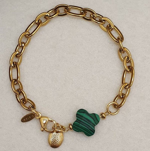 Een super leuk DIY armbandje met een beetje groen geluk. Het schakelarmbandje heeft ovale schakels en is van Stainless Steel. De standaardlengte is +/- 19 cm. Wil je een kleinere of grotere maat, geef dit dat aan wanneer je besteld bij het kopje opmerkingen.