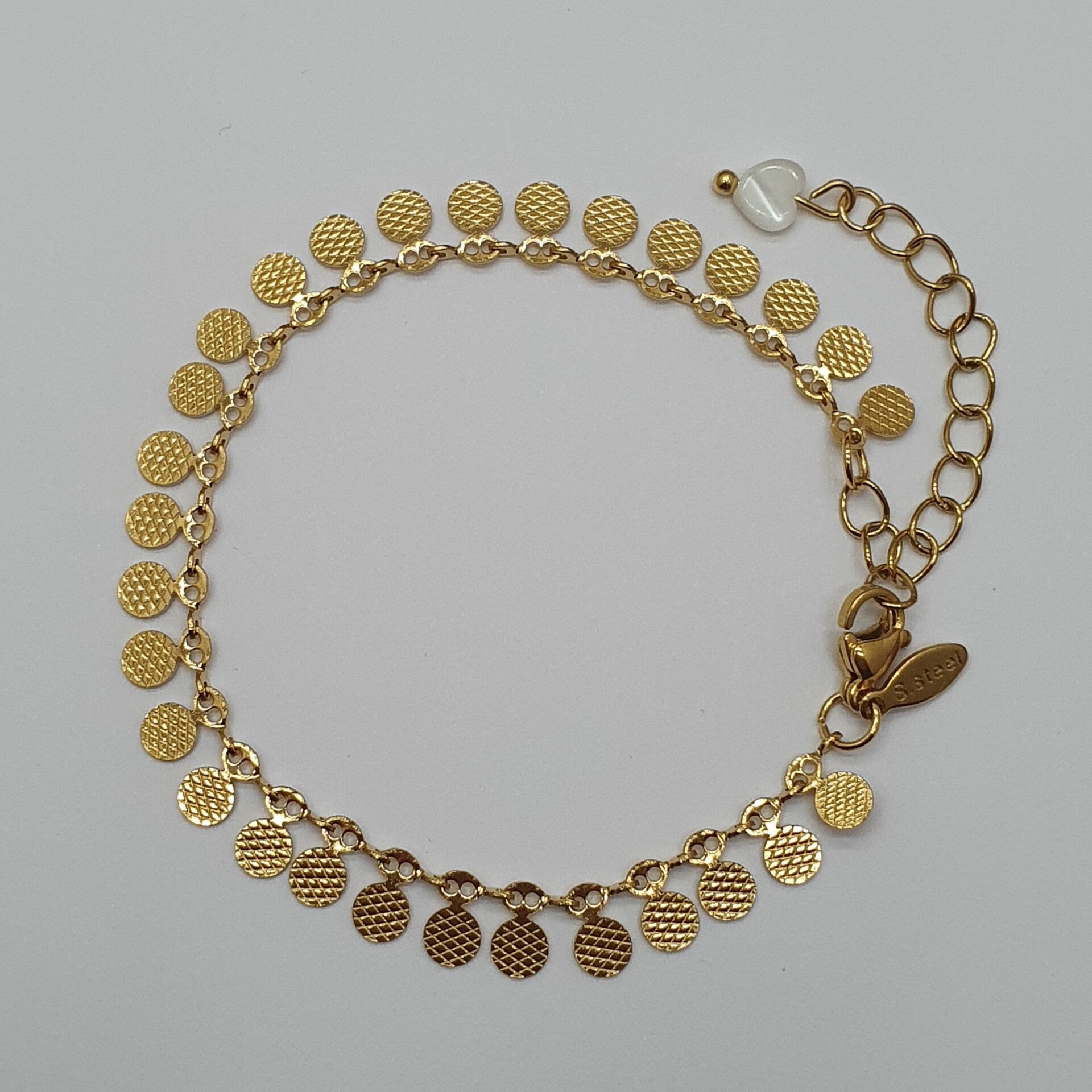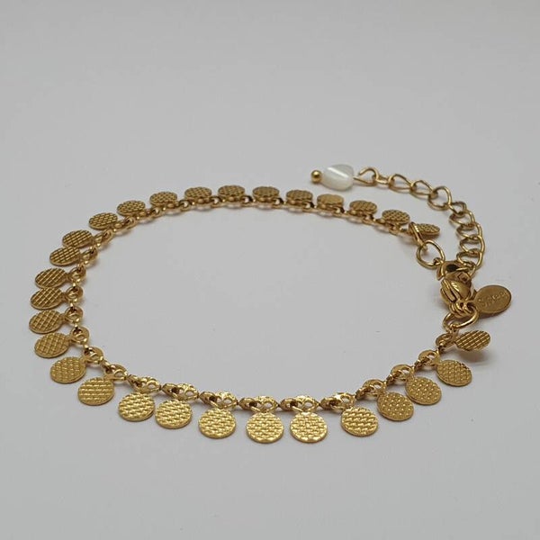 Dit muntjes armbandje is een echte vrolijker opvaller. Het armbandje is van Stainless Steel.