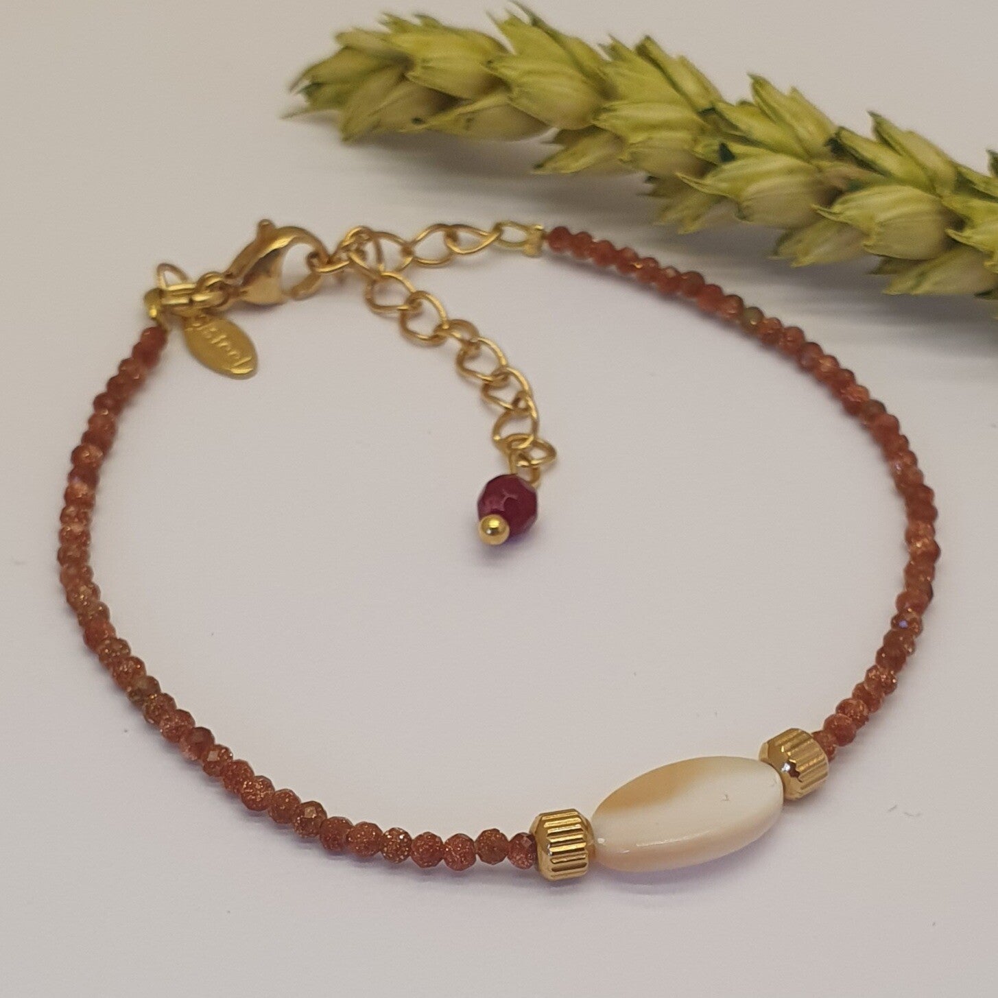 Een armbandje met nude tinten en een natuurstenn in het midden. Een leuke armbandje dat bij iedere outfit past! Door het verlengkettinkje is dit armbandje geschikt voor polsmaten tussen de 17-22 cm.