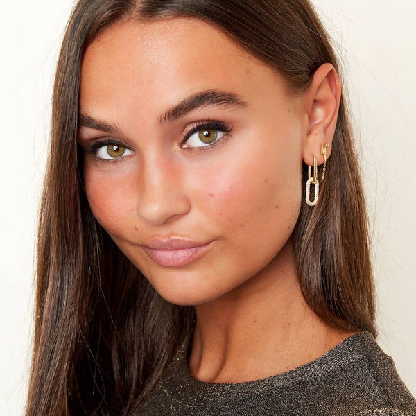 Chain oorbellen met bliksem icoontjes en een zirkonia steentje.