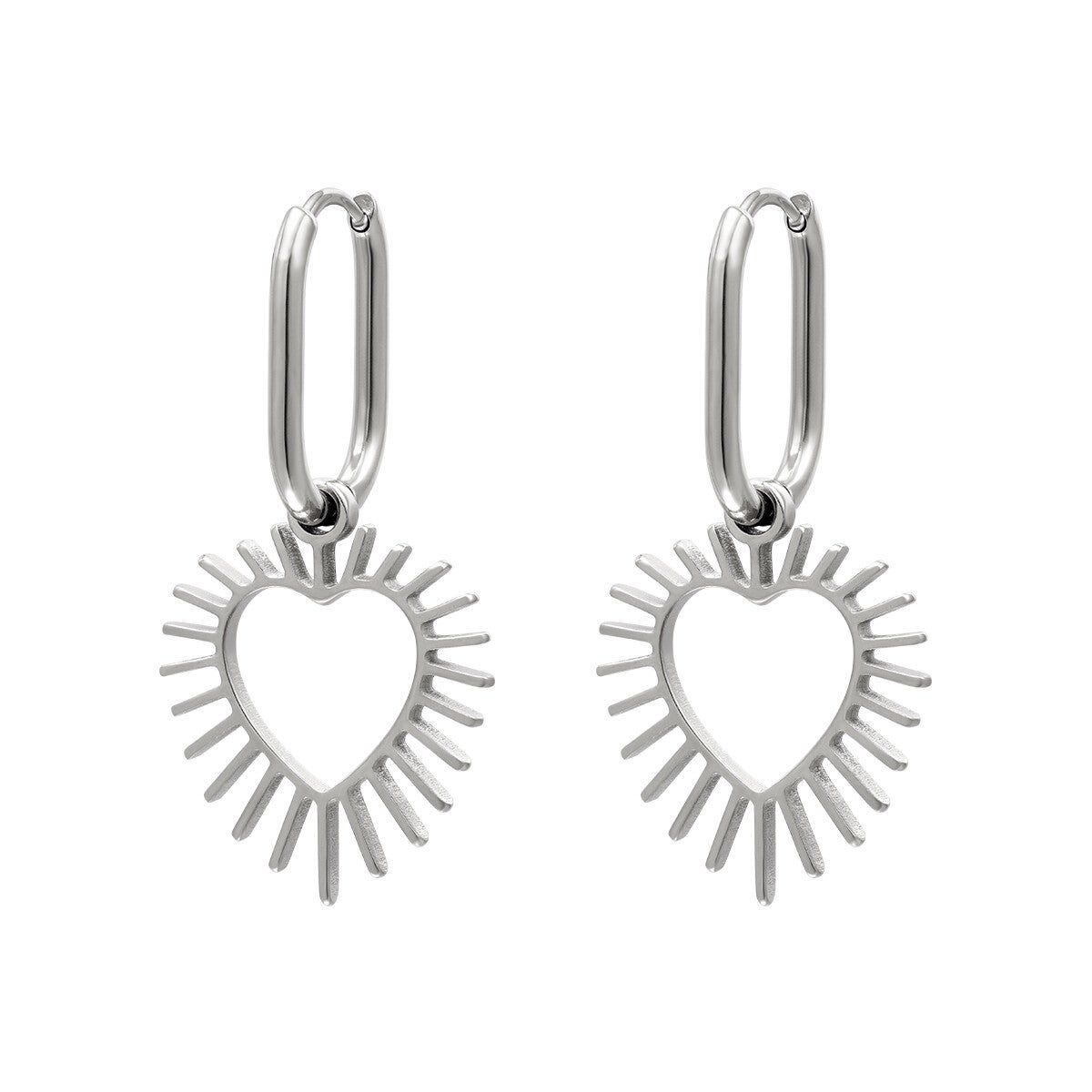 Gave oorbellen met rechthoekige ringen en opvallende hartjes.