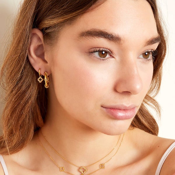Kleine stainless steel hoop oorbellen met een klavertje vier die is ingelegd met zirkonia steentjes.