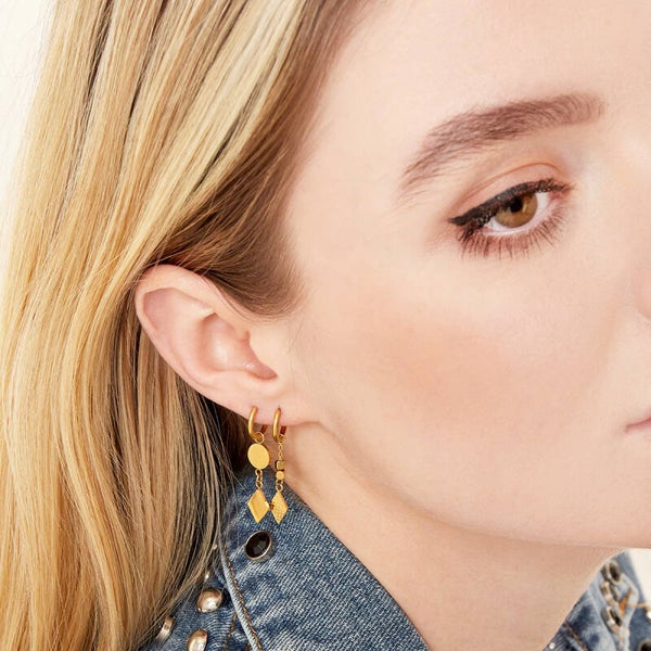 Leuke langere stainless steel oorbellen met een ruitje als hanger.