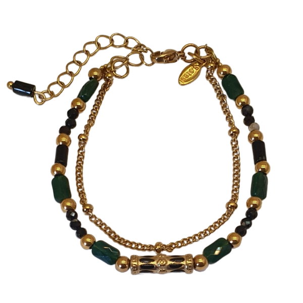 Dubbel fun met dit dubbellaags armbandje Juan. Mooie groene kleuren en een gaaf middenstuk.