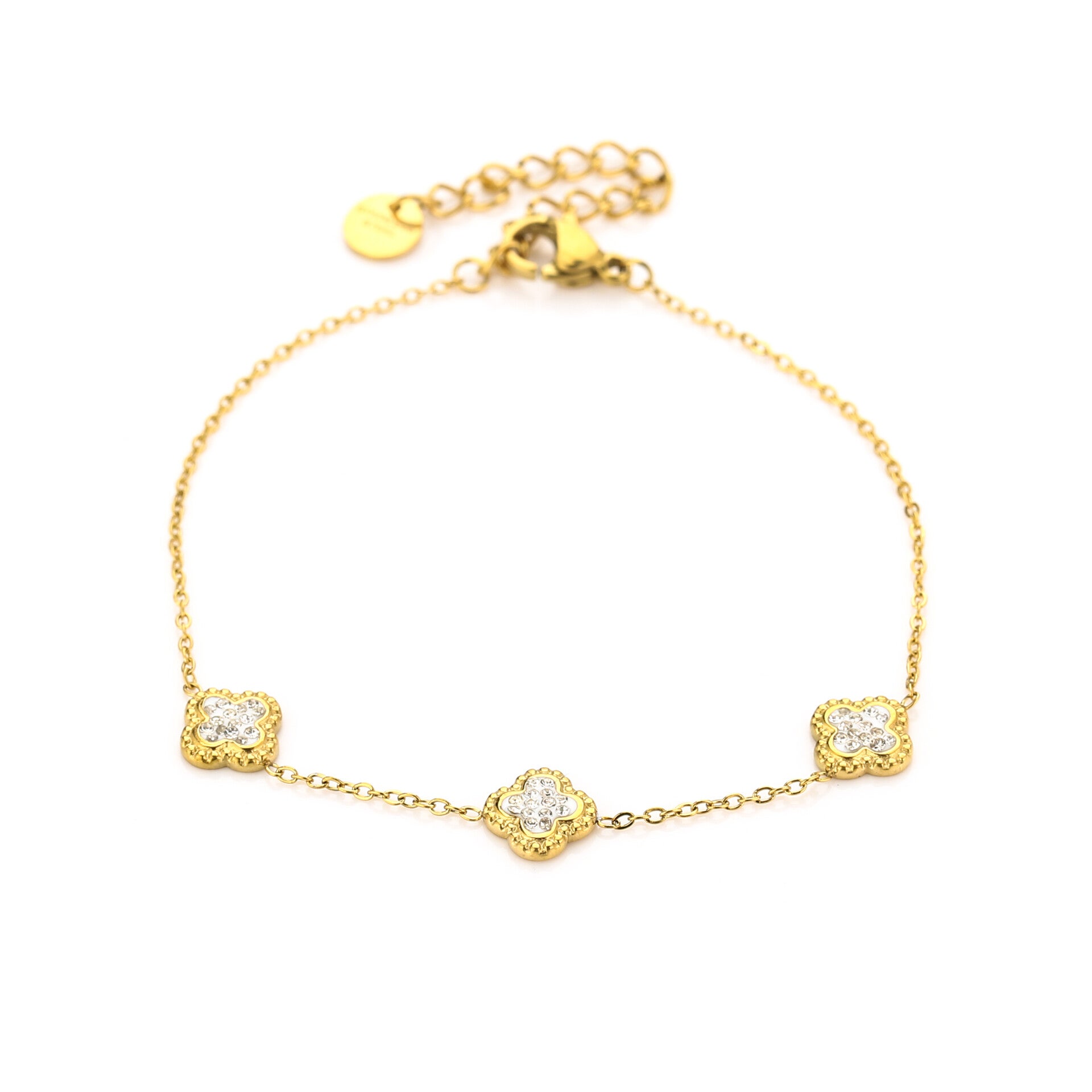 Zoet armbandje met klavertjes vier belegd met zirkonia steentjes